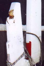 the deck, beautiful new hull paint rubbed through, teak trashed,