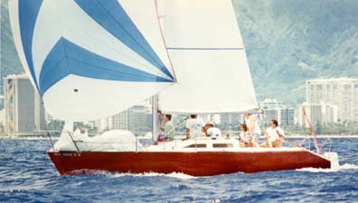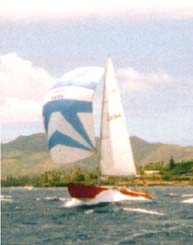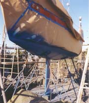 Bushwhacker isn't the only Sonoma to have had her share of keel problems. The Shark got some major keel work, too. She, however, got the Full Treatment - an entirely new keel, with more weight and a deeper draft. What a helluvalot of work! The first keel was lost on a trip to Kauai, and the quickly-fashioned second keel needed replacement... |